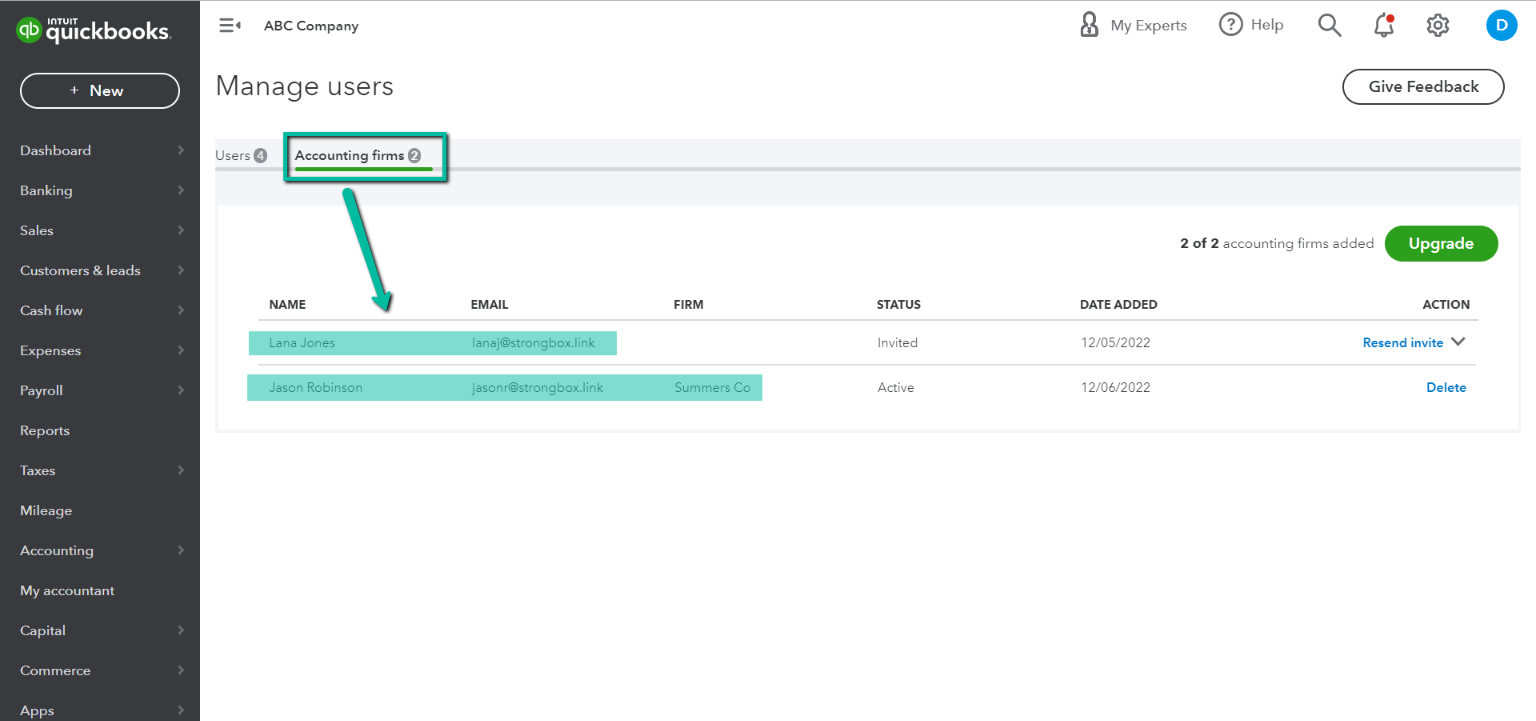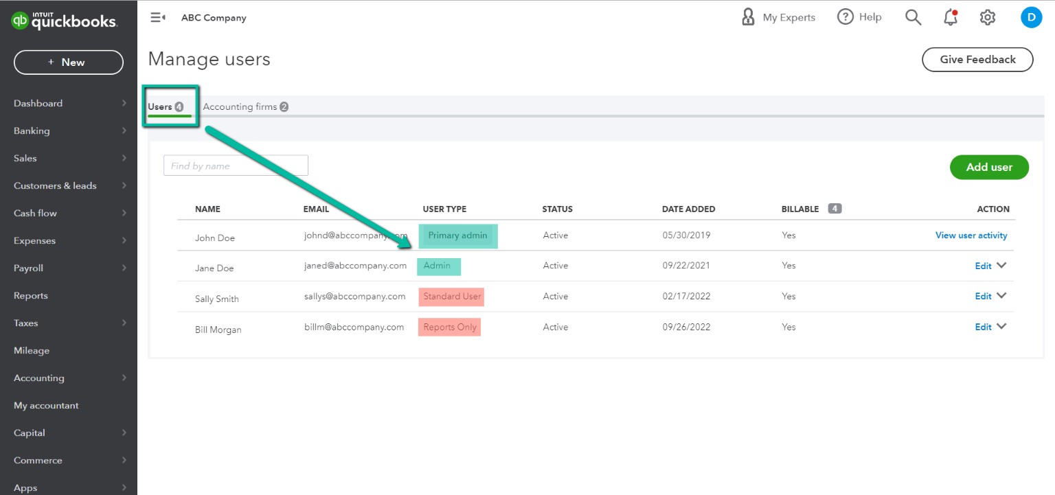 To collect reports from QuickBooks Online into Strongbox, you must connect using an Admin or Accounting Firm user.