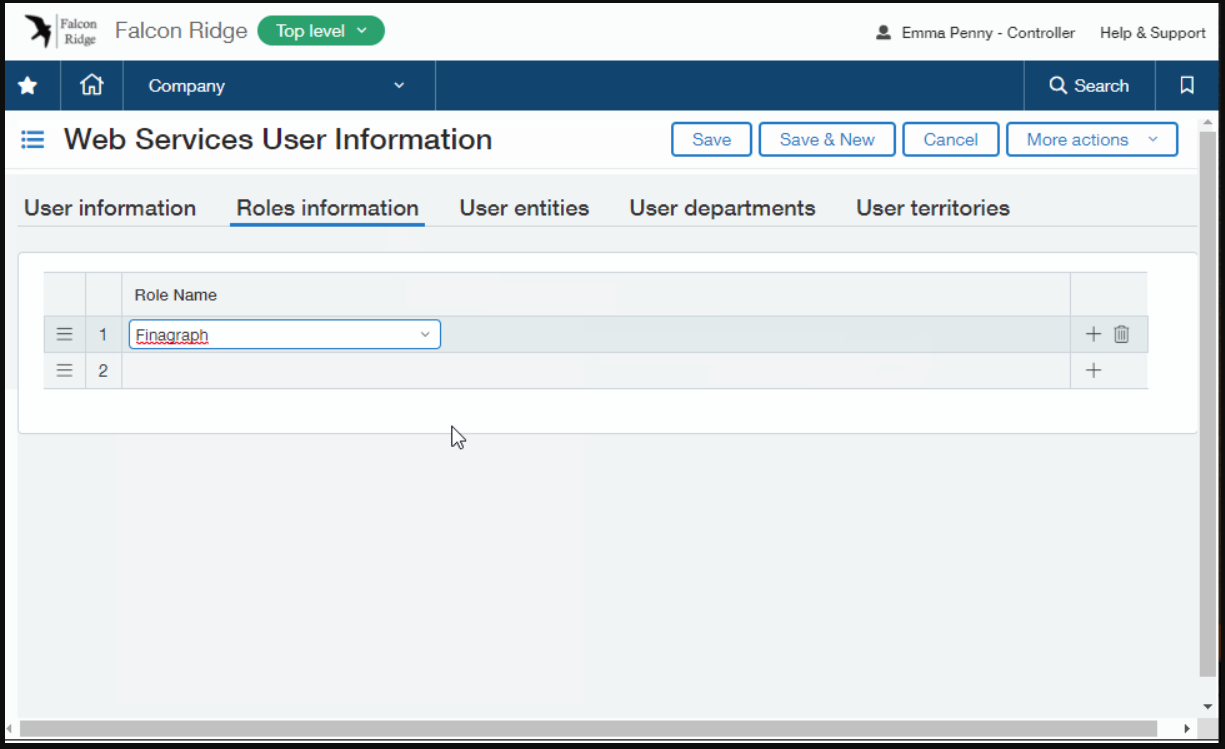 - Switch to the the Roles information tab, then select the Finagraph role created prior to this step.