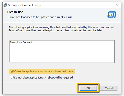 If you haven't updated Strongbox Connect recently, you'll see a pop-up window advising that an update is available. Follow the steps below for the best experience with your Strongbox Connect plug-in.